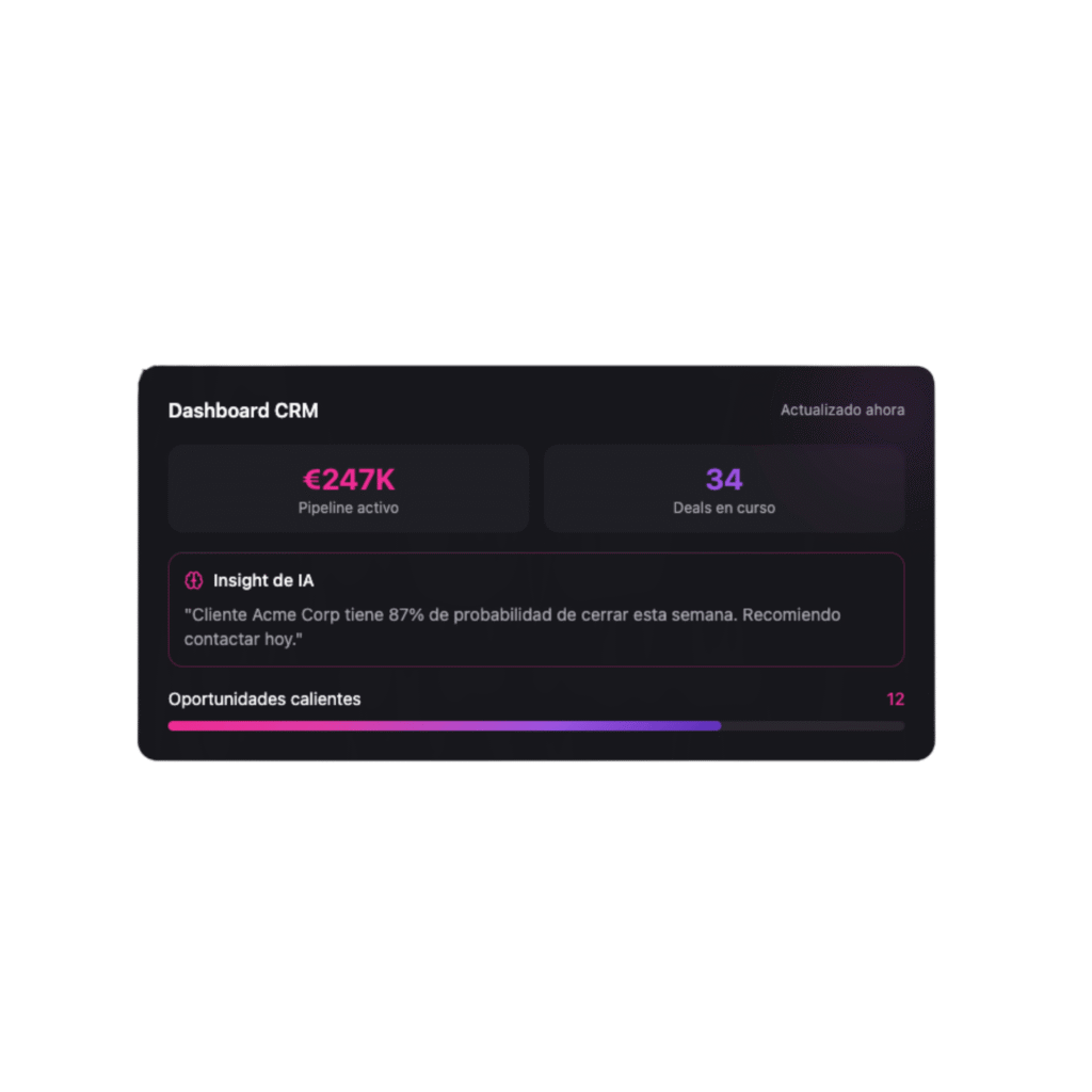 Un CRM que no solo almacena datos, sino que los analiza, predice comportamientos y recomienda acciones para maximizar tus ventas
